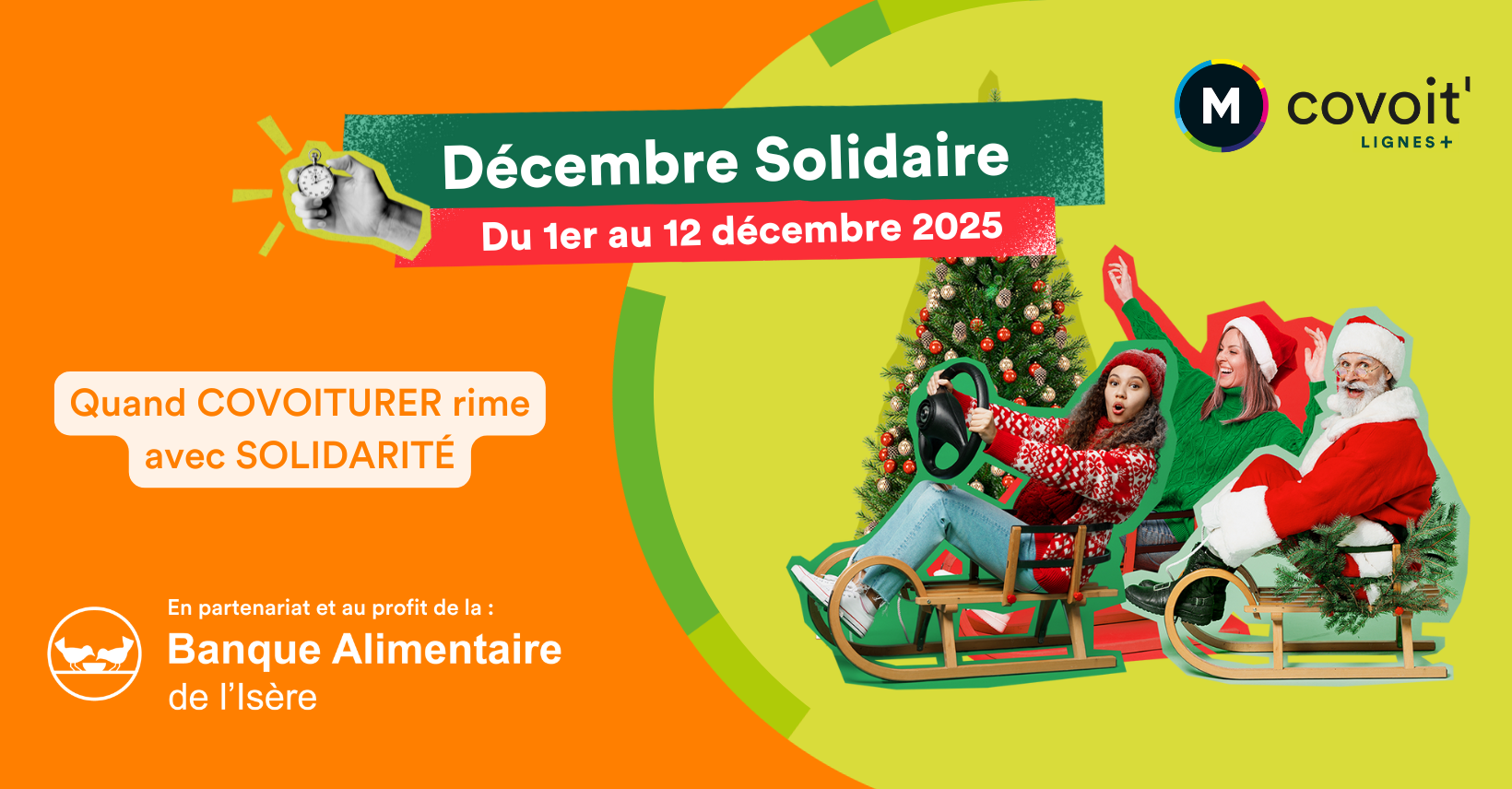 Covoiturez et gagner des € pour la Banque Alimentaire de l’Isère Du 1er au 12 décembre, pour chaque trajet réalisé (conducteurs ou passagers) vous allez